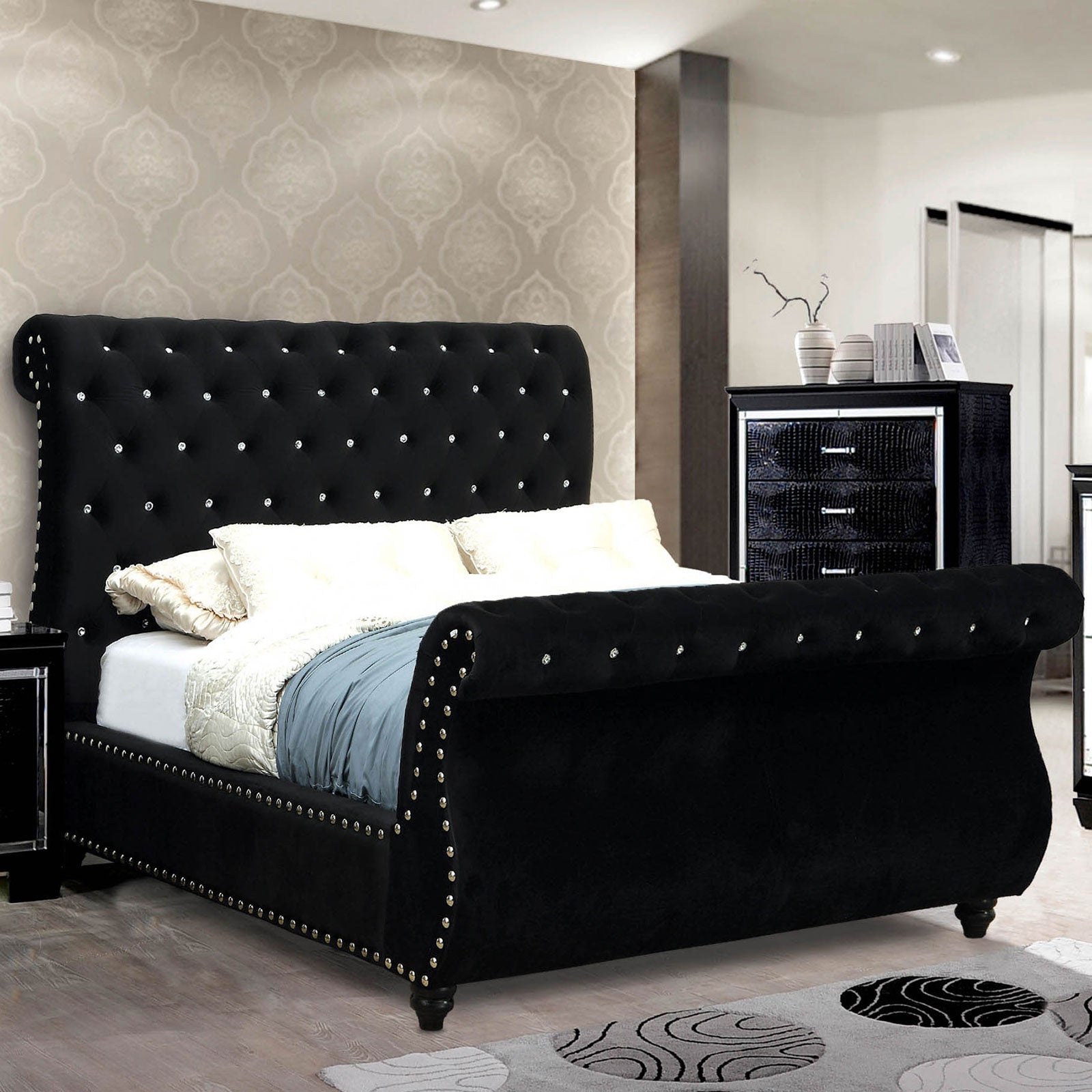 FOA East MAIREAD E.King Bed, Silver/Black
