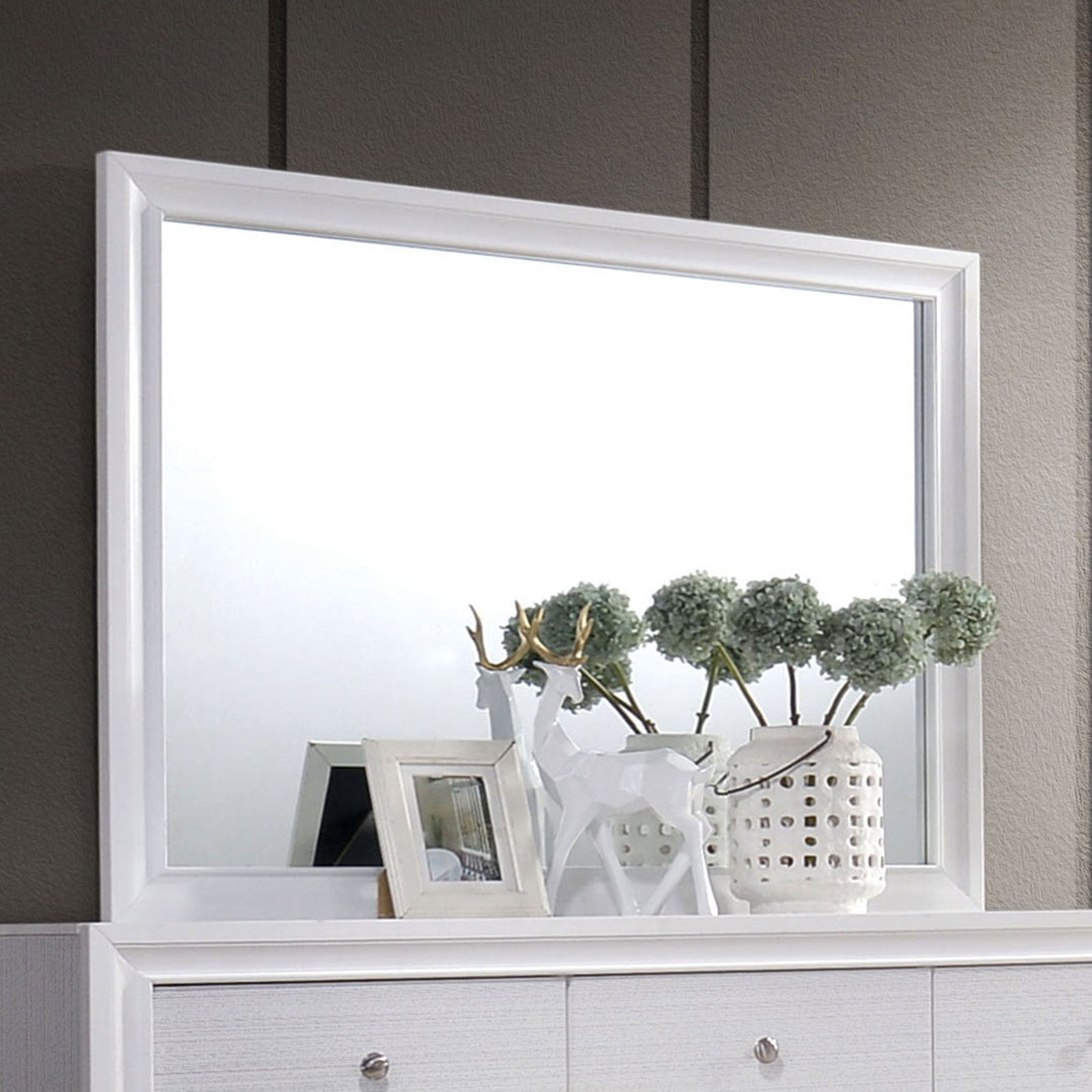 Brighten your room with the sheen and shine that this bedroom set delivers. The gleaming finish promotes a refreshing clean aesthetic with silver lines that glisten. Silver tone pulls detail the case goods brilliantly, offering an easy grasp to the o ne-of-a-kind jewelry drawers. Glimmering and glamorous, create the room you have always dreamed of with this stunning styled bedroom set.