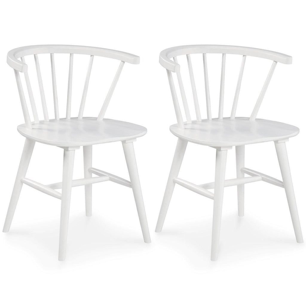 Bring light to your dining area with clean lines and a bright, white finish. The dining room chair sports a low spindle back with turned legs for beautiful simplicity. This functional piece marries minimalism with big style for a delightful combination.