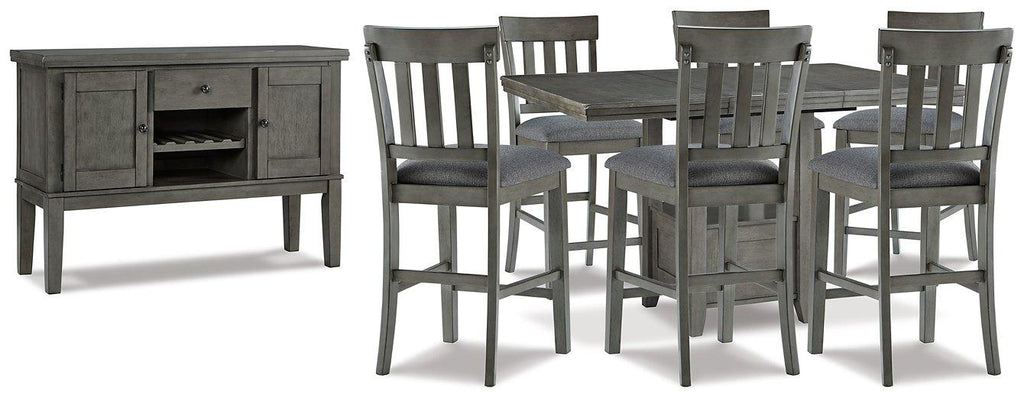 Cool and on-trend. This dining package sports an antiqued gray finish for a contemporary-yet-casual feel. With this set, dining with friends and family has never been so stylish.