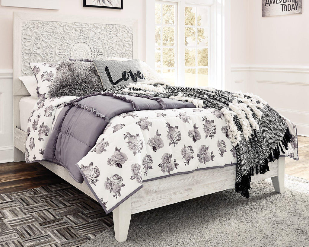 Your young trendsetter can live out her free spirit with this twin bed. Exquisite carved medallion pattern is a testament to true style. Charming whitewashed finish sets a foundation for a room bursting with personality. Headboard's adjustable height design offers added flexibility. Mattress and foundation/box spring available, sold separately.
