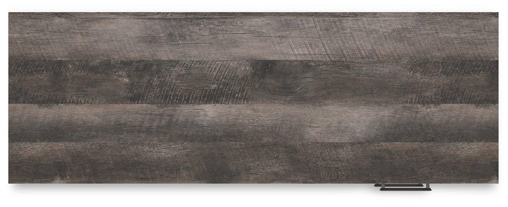 • Top with rustic gray planked replicated oak grain with authentic touch
