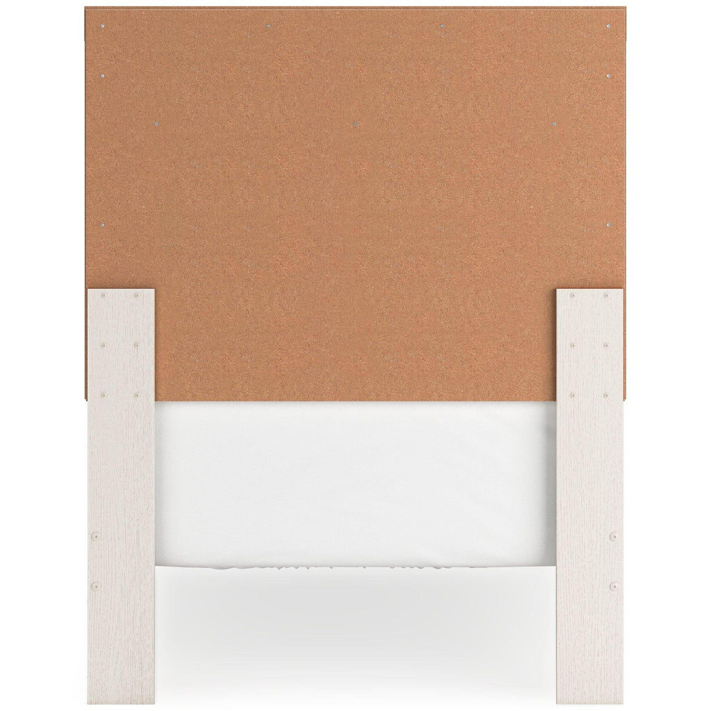 With its clean-lined look and modern attitude, this bedroom package is a fresh style awakening. A crisp, white hue over subtle replicated wood grain easily complements your existing aesthetic. Smooth drawer fronts with antiqued pewter-tone handles complete the look—proof that beauty lies in the details.