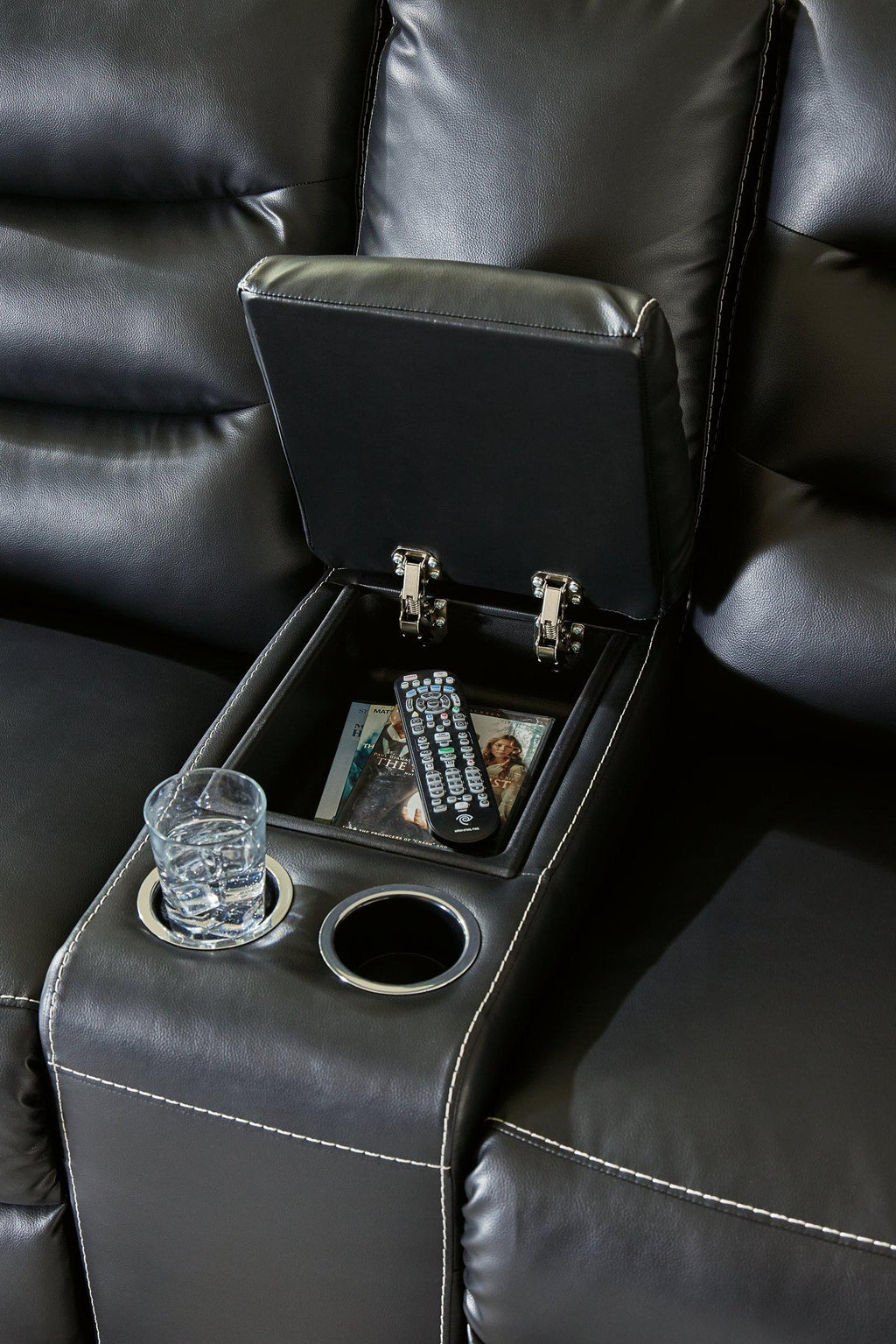 With its decidedly contemporary styling, this power reclining loveseat with console has a sleek sensibility that seamlessly elevates your living room aesthetic. Explore endless possibilities for comfort with its one-touch power control, zero-gravity reclining and adjustable headrests. A triple-tier back and chic black upholstery round out this simply stunning piece.