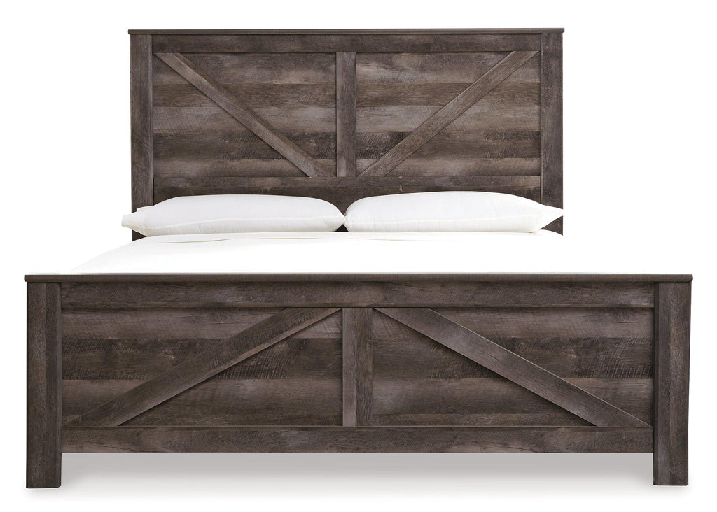 This queen crossbuck panel bed is sure to win your heart with its daring designer take on modern rustic. The bed’s crisp, clean and minimalist-chic profile is enriched with a striking replicated oak grain with thick plank styling and a weathered gray finish for that much more authentic character. Mattress and foundation/box spring available, sold separately.